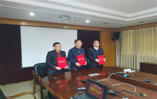 發(fā)言結(jié)束,三方代表正式在合作協(xié)議上簽字蓋章并交換文本,簽字結(jié)束后,相互握手并合影留念。