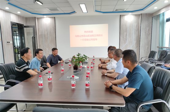 6月23日,馬鞍山市花山法院院長王偉、高新法庭庭長吳海嬌、馬鞍山慈湖高新區(qū)政務(wù)服務(wù)中心主任孫軼等領(lǐng)導(dǎo),蒞臨公司調(diào)研指導(dǎo)工作。